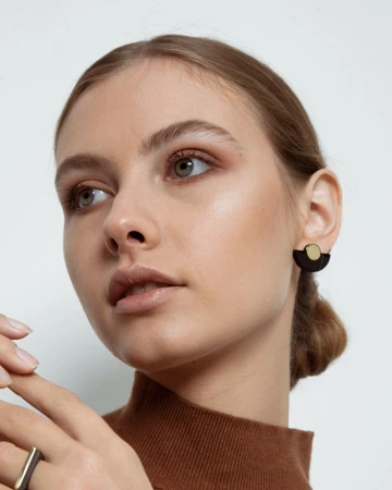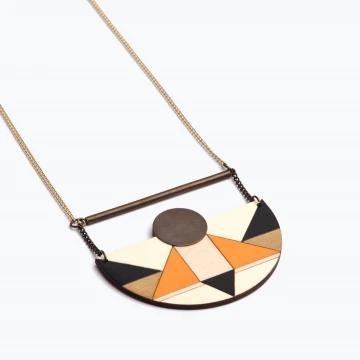 Geometric semicircle wooden necklace with brass accessories! This BUG necklace is made from well chosen solid wood, is lightweight and perfect for everyday