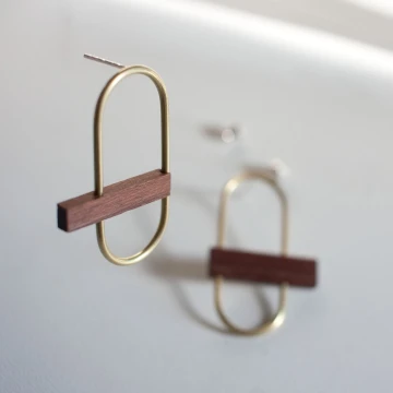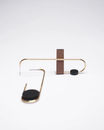 20 gZero-shaped pendant earrings, with wooden parts that create a different game. A very particular and light earring. It was designed to be used daily. Earrin